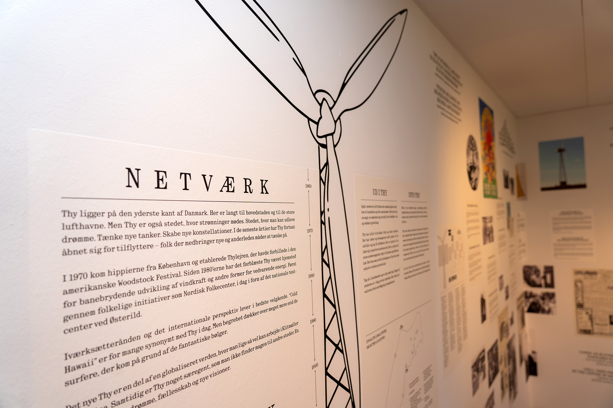 Udstillingen rummer også en lille biograf, der viser film om Thylejren, vindmøllerne og surfterne.
